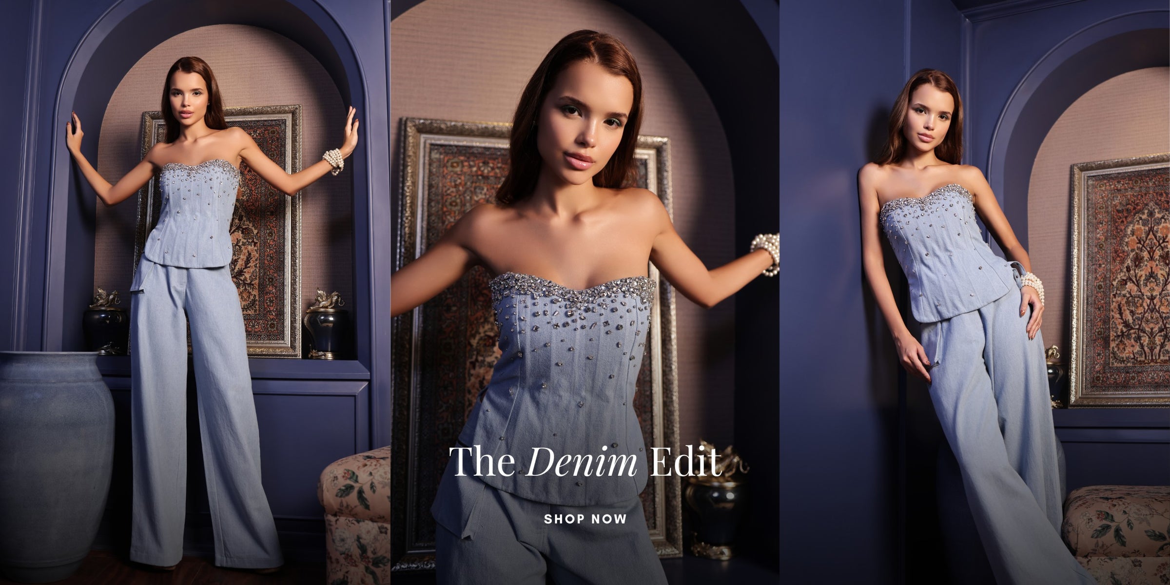 Denim & Leather Fusion Jacket with Gold Stone Detailing