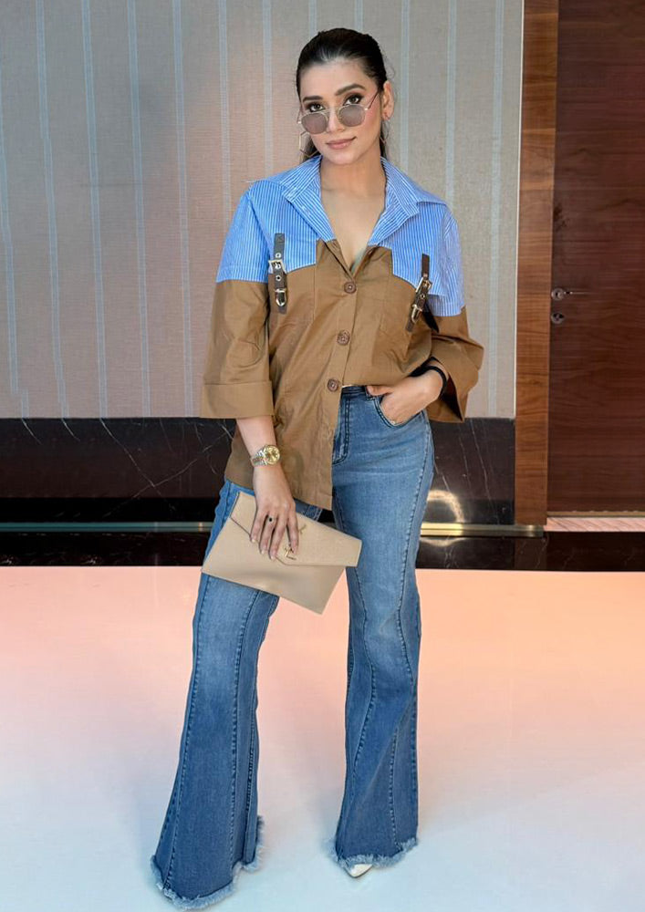 Blue Stripe & Brown Dual-Tone Shirt with Straps