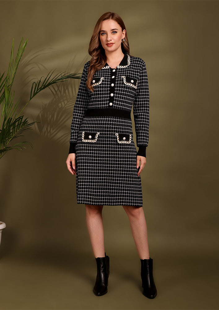 Black & White Houndstooth Tweed Skirt Set
